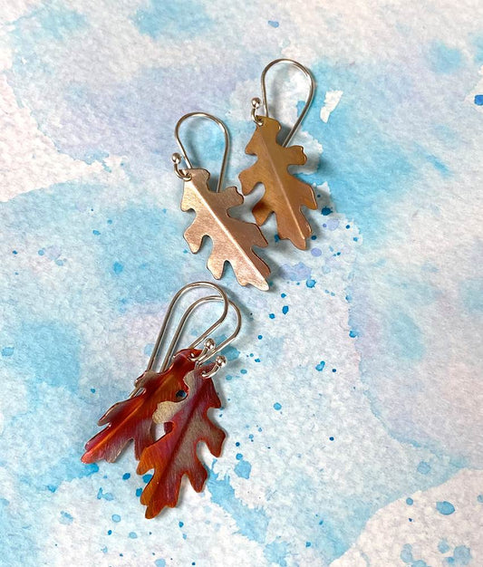 Fall Leaves Copper and Sterling Silver Earrings by Sprig & Sparrow Jewelry