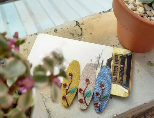 Nut Branch Yellow Embroidered Hair Barrette from Quince FablesRegular price From $8.95 USDRegular priceUnit price per-