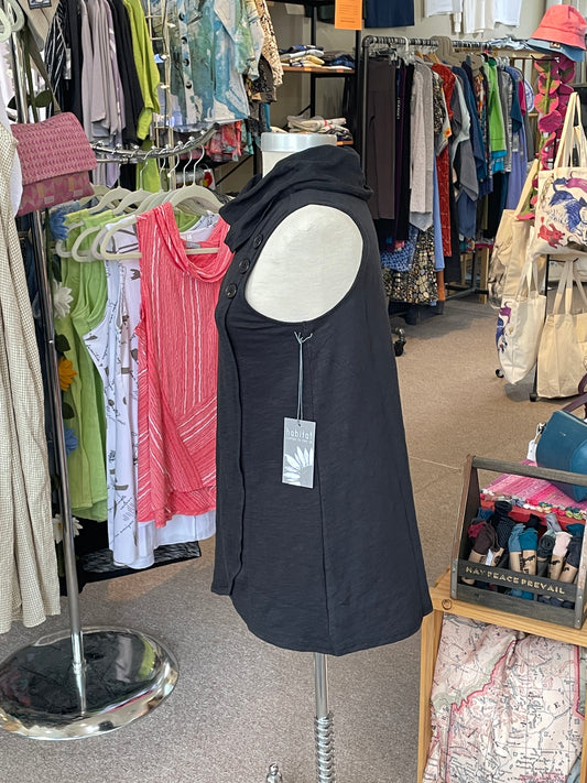 Cotton Sleeveless Cowl Top in Black by Habitat Clothing
