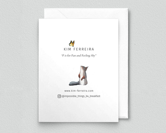 Fox with Zinnias Greeting Card (blank inside) by Kim Ferreira (Joie de Vivre)