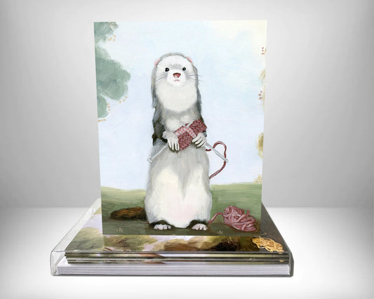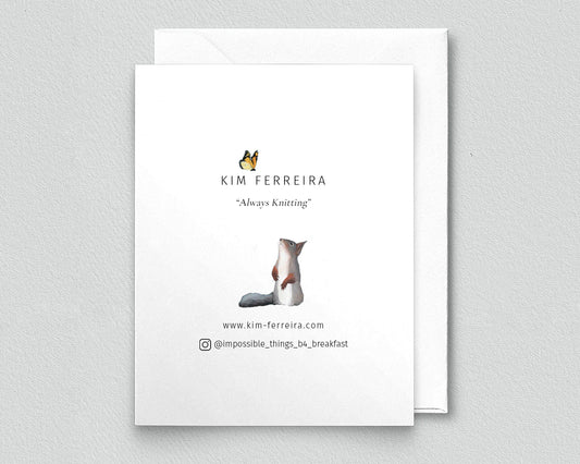 Squirrel Knitting Greeting Card (blank inside) by Kim Ferreira (Joie de Vivre)