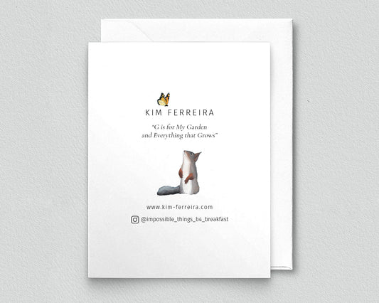 Fox with Zinnias Greeting Card (blank inside) by Kim Ferreira (Joie de Vivre)