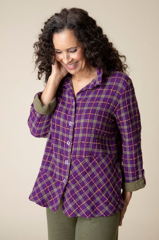 Double Faced Windowpane Pieced Tunic Shirt in Plum by Habitat Clothing