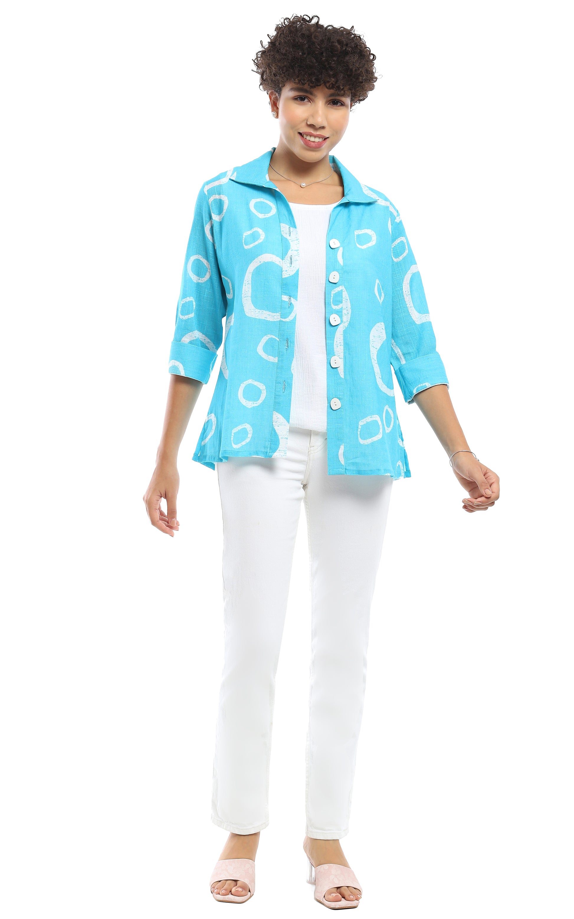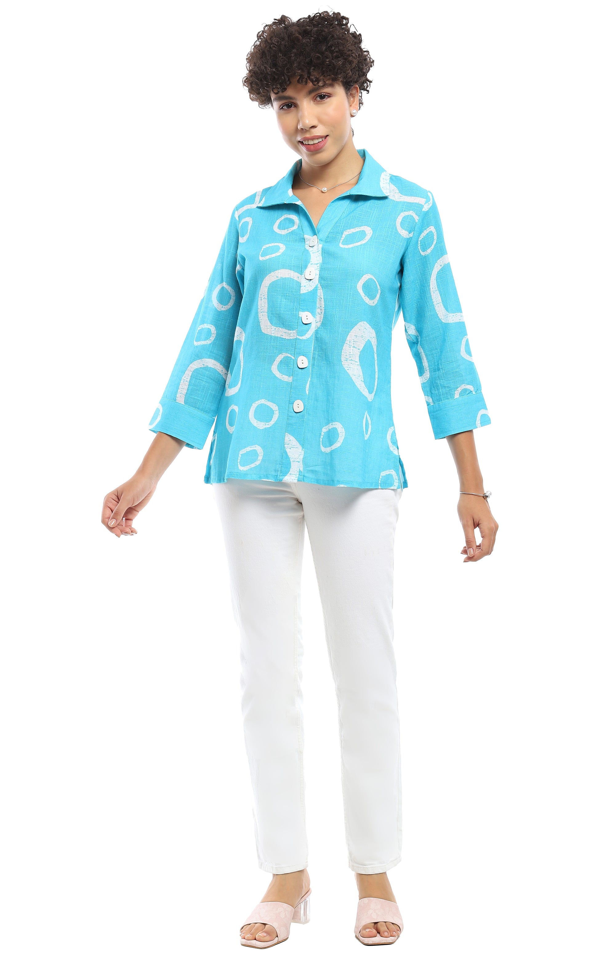 April Button Up Shirt in Turquoise by Parsley & Sage