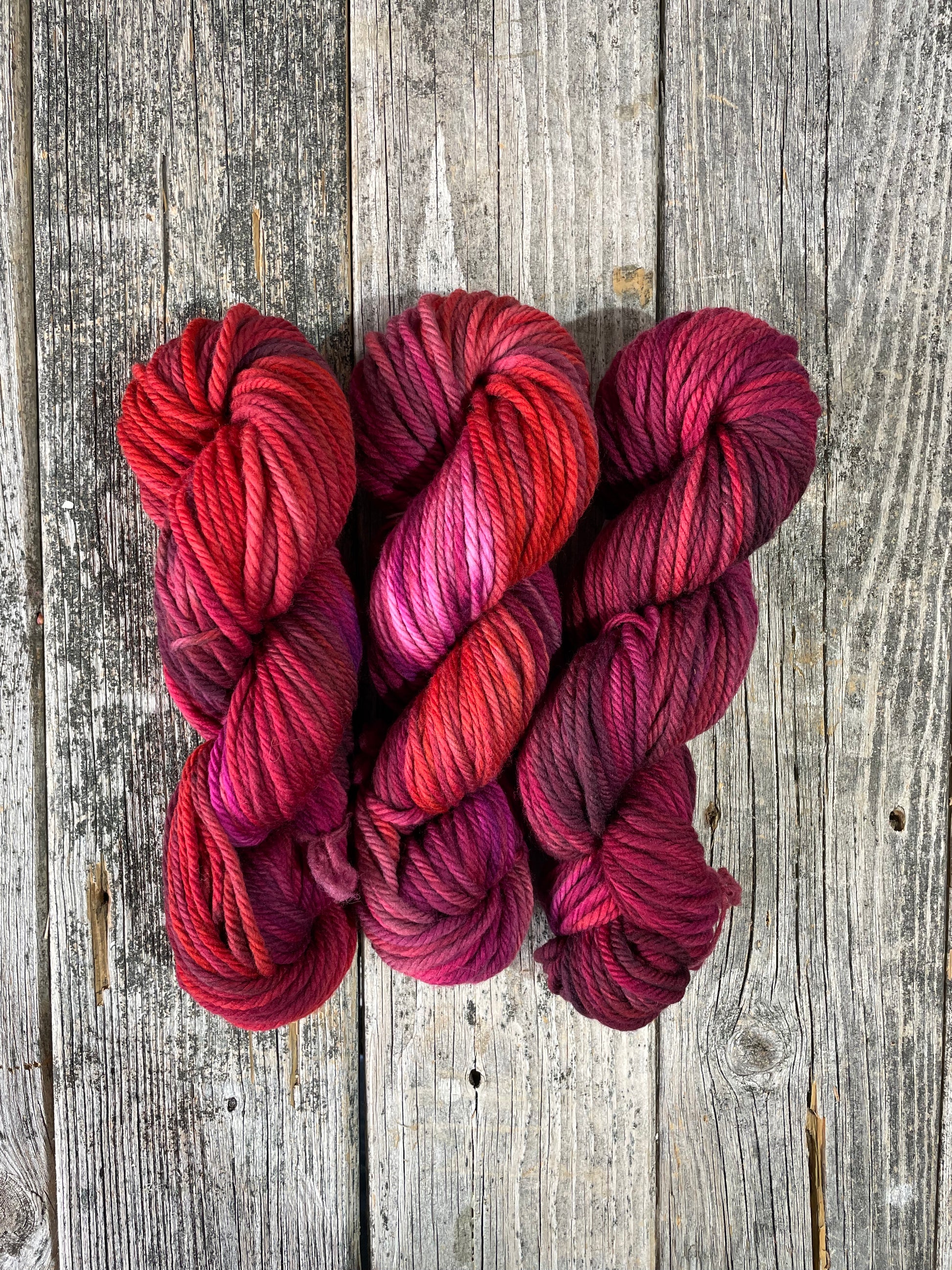Each skein of Maine Yarn & Fiber Supply yarn is hand-dyed in our Bangor, Maine studio by skilled fiberistas in small batches. So please, expect some minor variations between skeins. For larger projects such as sweaters we suggest a custom dye order. Please contact us for more details.
