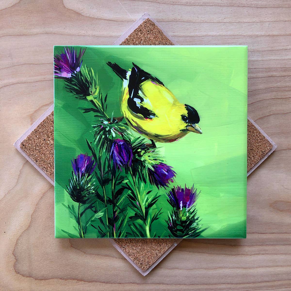 Goldfinch on Thistle Trivet by Art by Alyssa