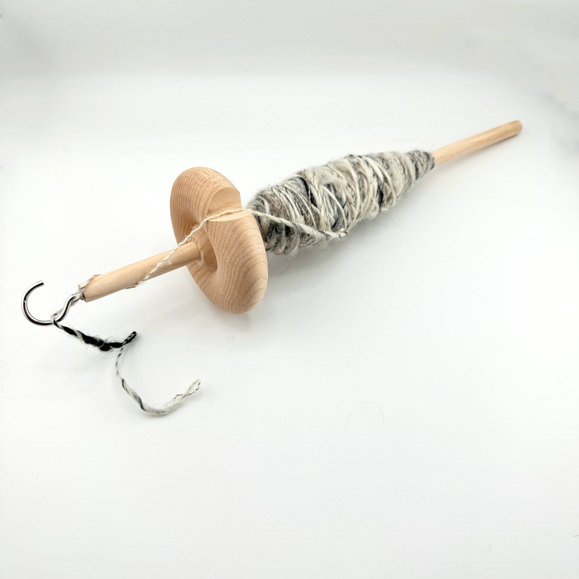 This spindle features a smooth hook at the top, making it easy to catch and spin the fiber. Its lightweight and portable design allow you to take your spinning anywhere. Whether you're working with wool, alpaca, or other fibers, this drop spindle is an excellent tool for achieving consistent, high-quality yarn.