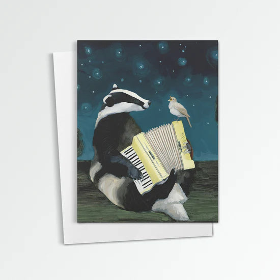 Badger with Accordian Greeting Card (blank inside) by Kim Ferreira (Joie de Vivre)