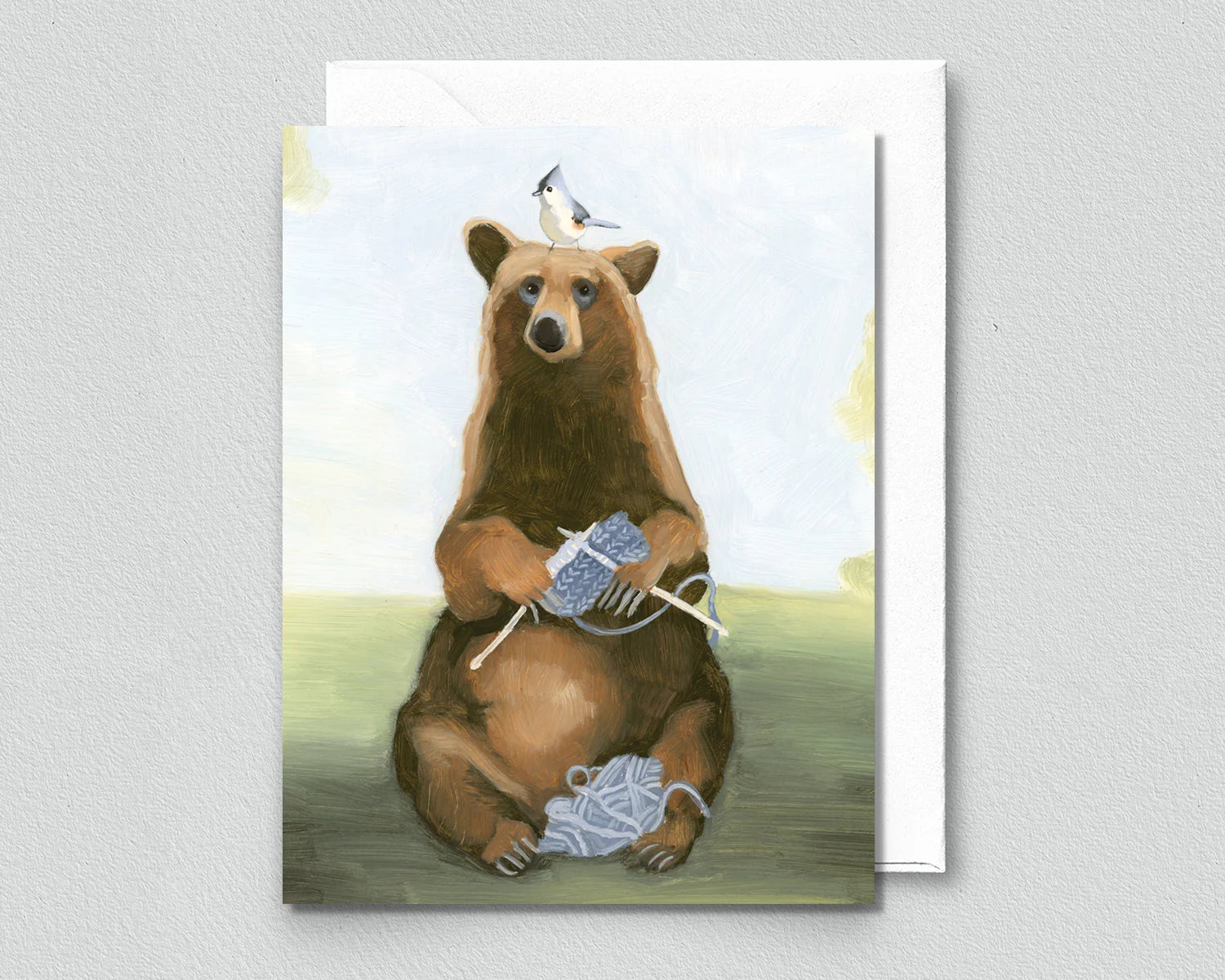 Bear Knitting Greeting Card (blank inside) by Kim Ferreira (Joie de Vivre)