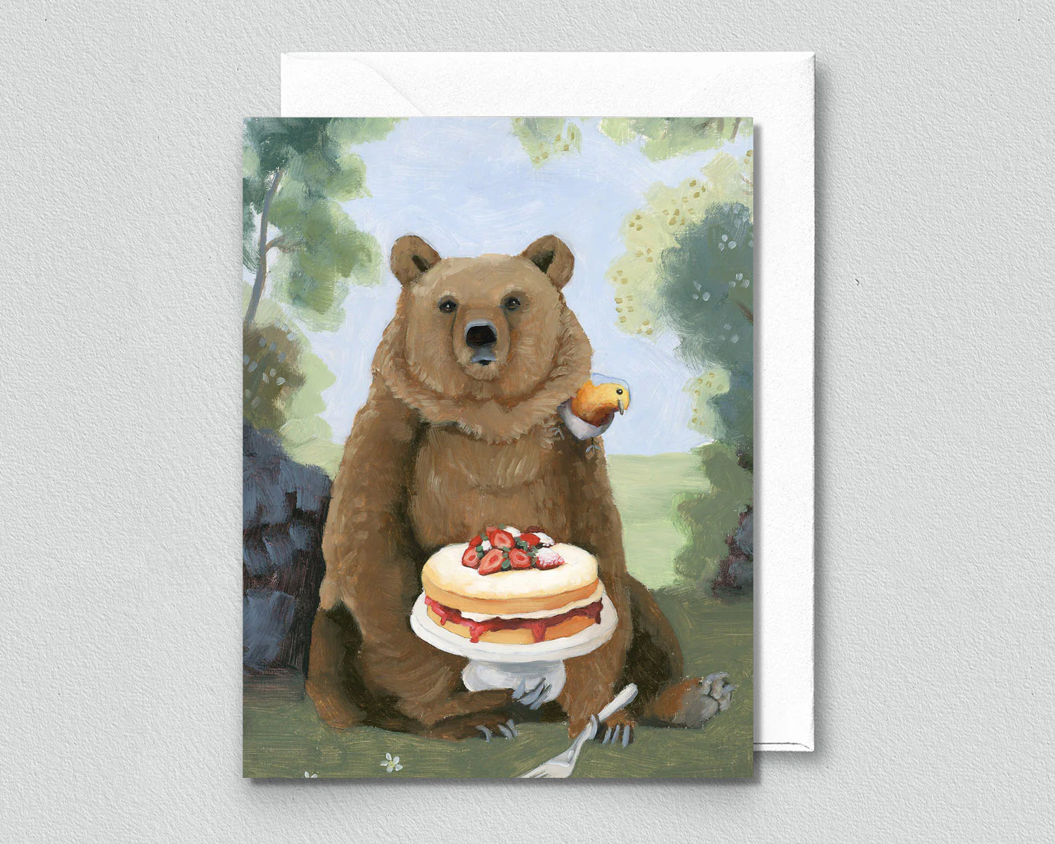 Bear with Victoria Sandwich Cake Greeting Card (blank inside) by Kim Ferreira (Joie de Vivre)