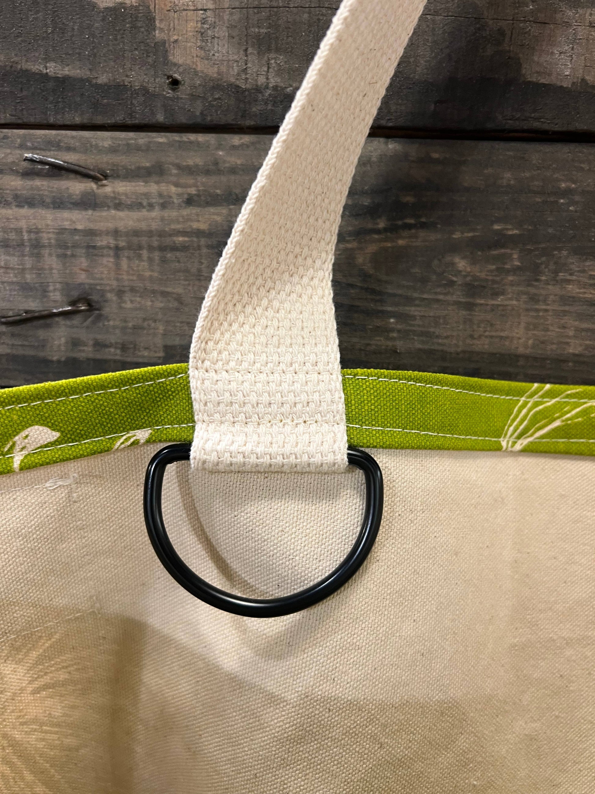 This fabulous Tote includes a nice big pocket inside as well as a D ring so that you can clip your keys to the inside of the tote. It's great for running errands, going to the farmer's market, the grocery store, and can truly be your every day bag! What makes this product line so special? The flowers are hand sketched by Chris (our Owner and Artist), and each piece of fabric is individually hand screen printed and sewn. All of this amazing work is done in Bucks County, PA by our team. Made in U.S.A. 100% Natural Cotton Canvas. Approximately 17” tall x 16” wide x 6” deep. Cold water wash. Do not bleach. Line dry.