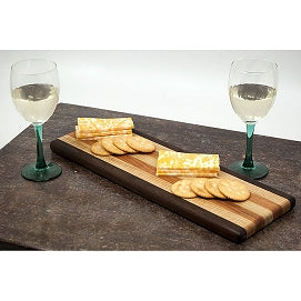 Multi-wood cutting boards that are long and narrow great for cutting bread or serving cheese. Each board is made from 3/4'' strips of local hardwoods that have been glued together. They are each finished in a food safe organic oil. The 15.5'' boards have vertical stripes, and the 12.5'' board has the horizontal stripes.