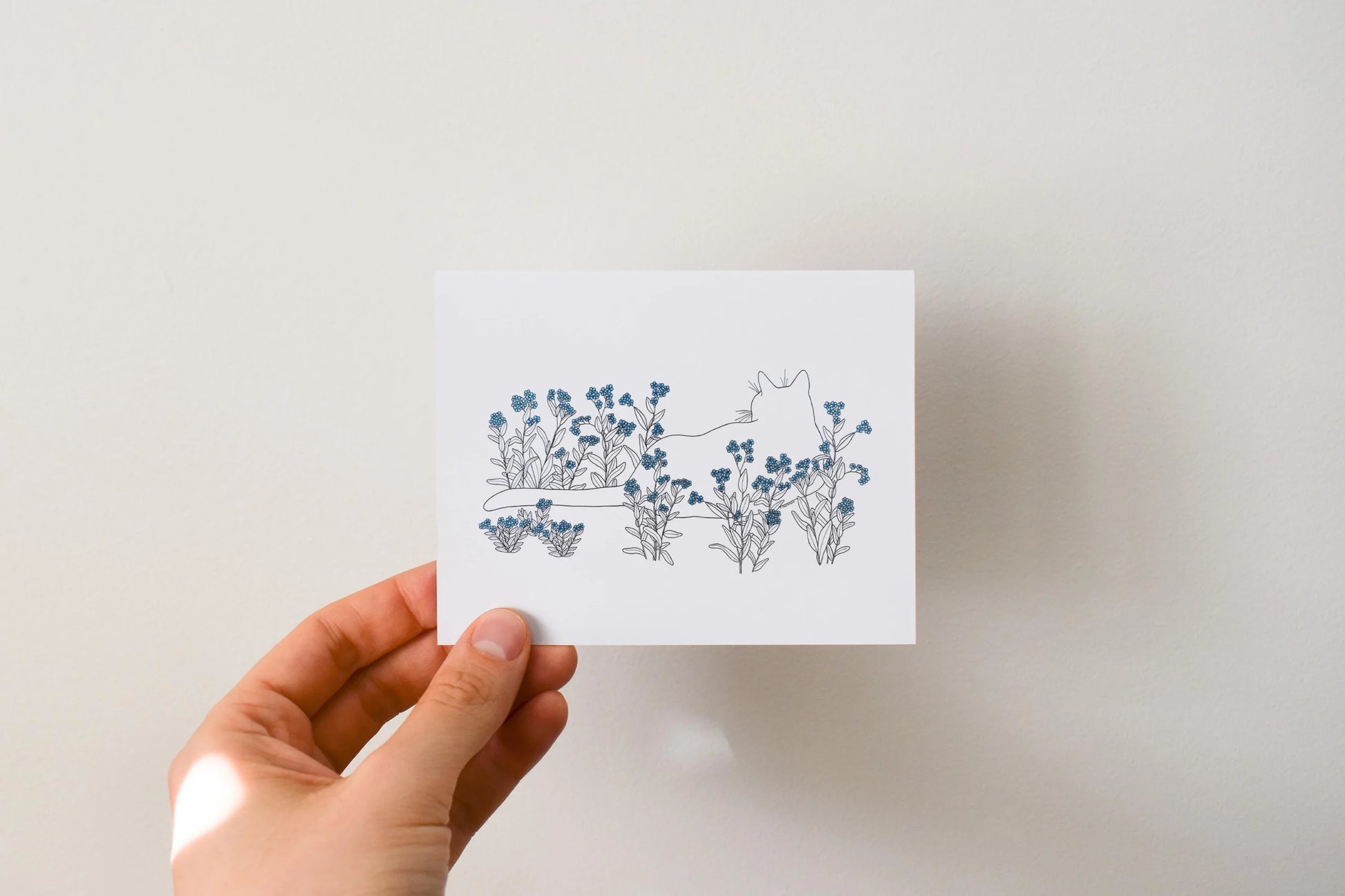 Cat and Forget-Me-Nots - Greeting Card by 3 Legged Dog Ink