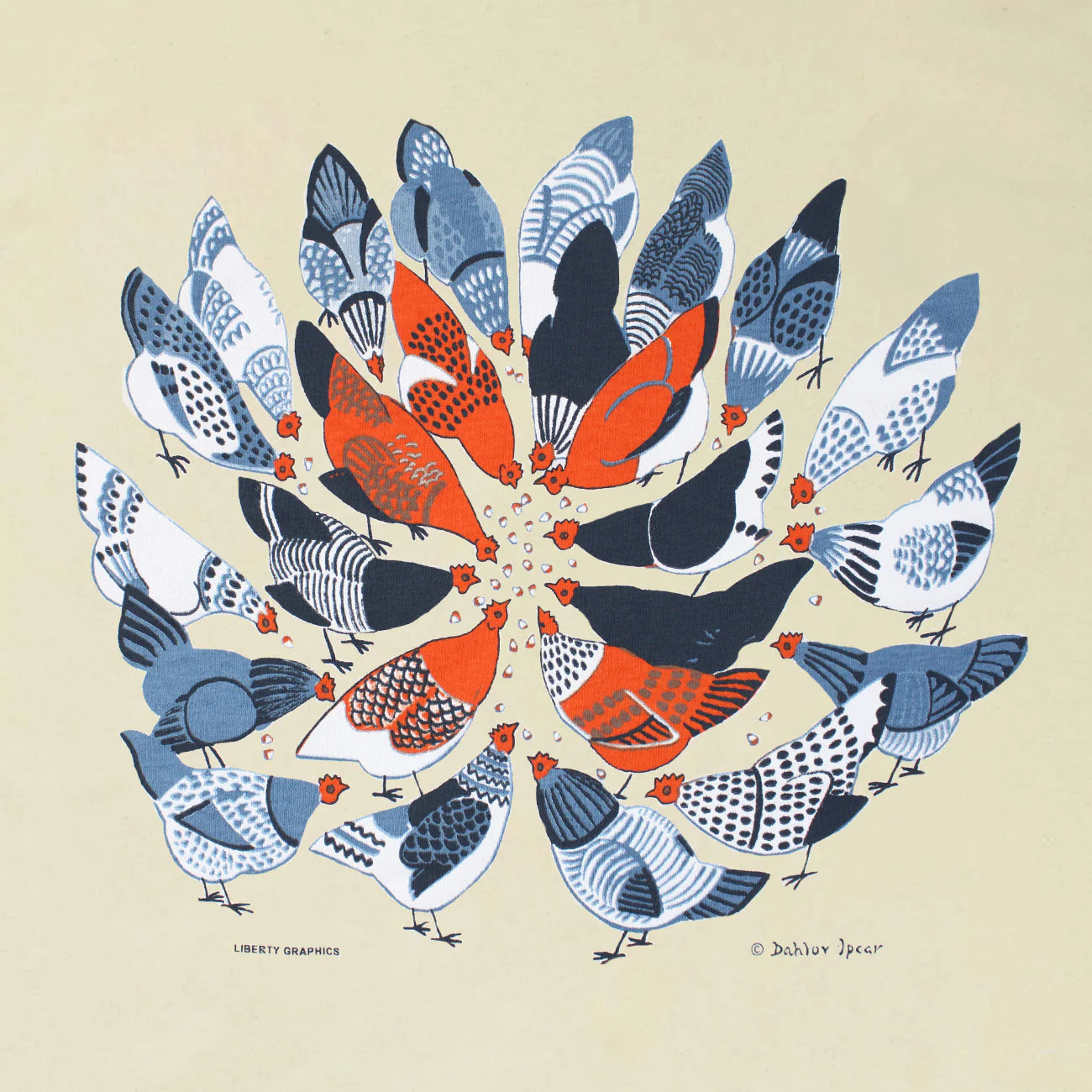 Liberty Graphics presents Chickens printed on a 100% cotton Gildan heavyweight Youth t-shirt. Liberty Graphics prints t-shirts using 100% water-based ink for your comfort and our environment. Artist: Dahlov Ipcar.