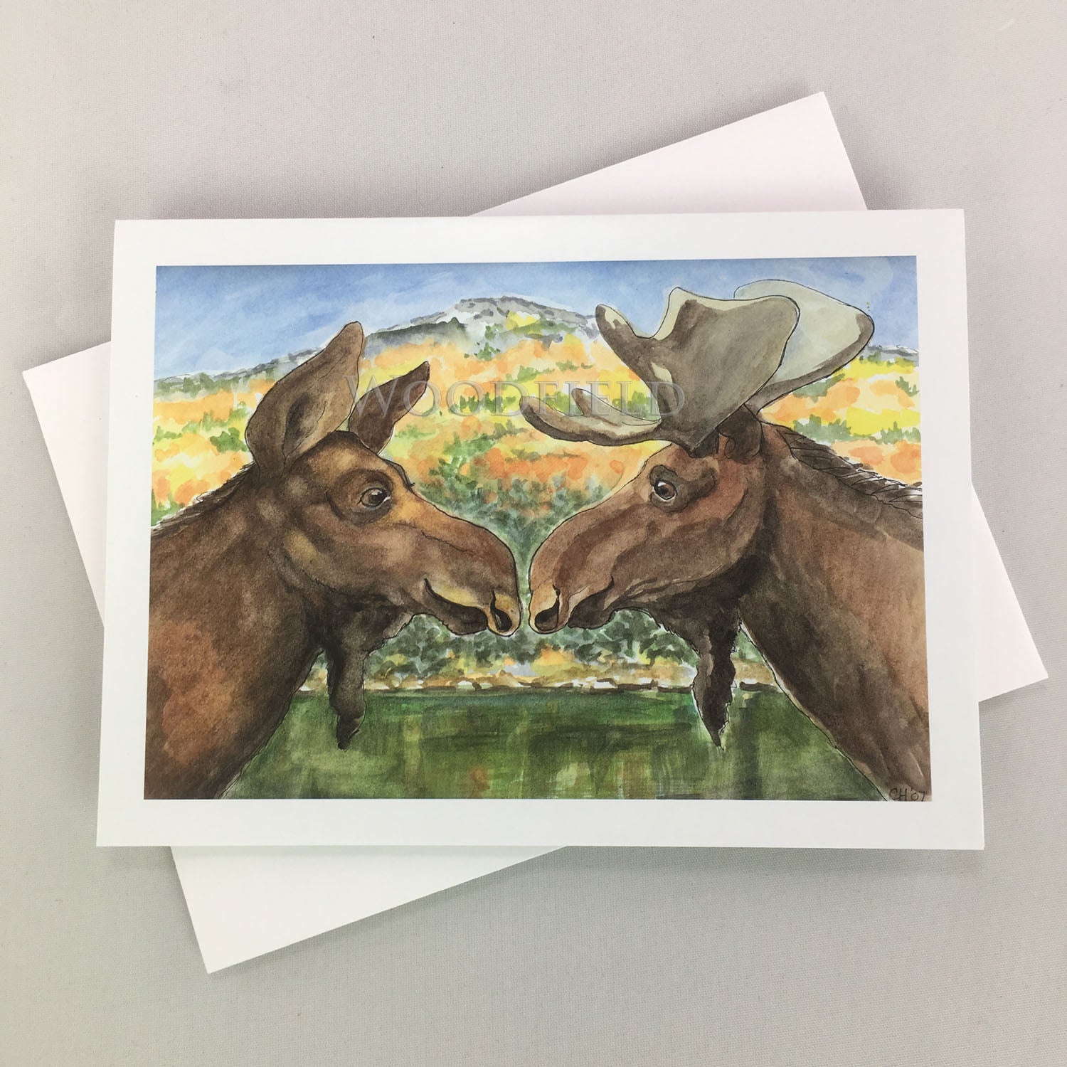 Individual 5-1/8" x 7" notecard comes with a white envelope. Front of card has image with a white border. The inside is blank. A short storyline is written on the back of the card.