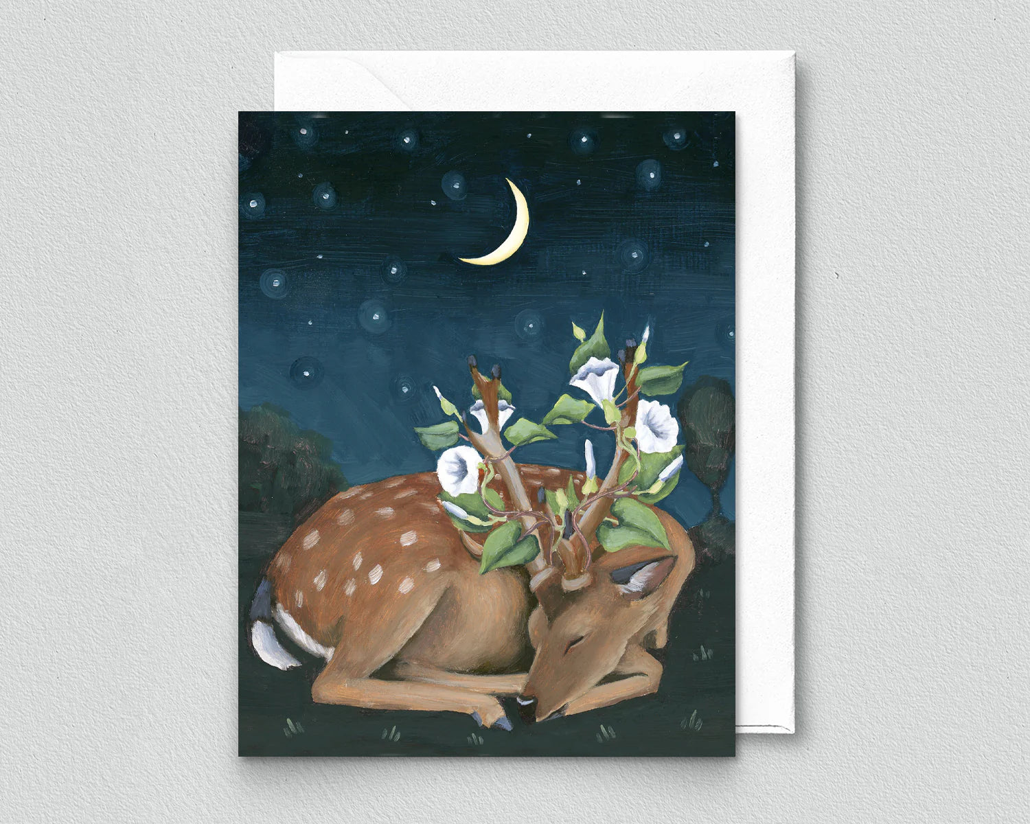 Deer with Moonflowers Greeting Card (blank inside) by Kim Ferreira (Joie de Vivre)