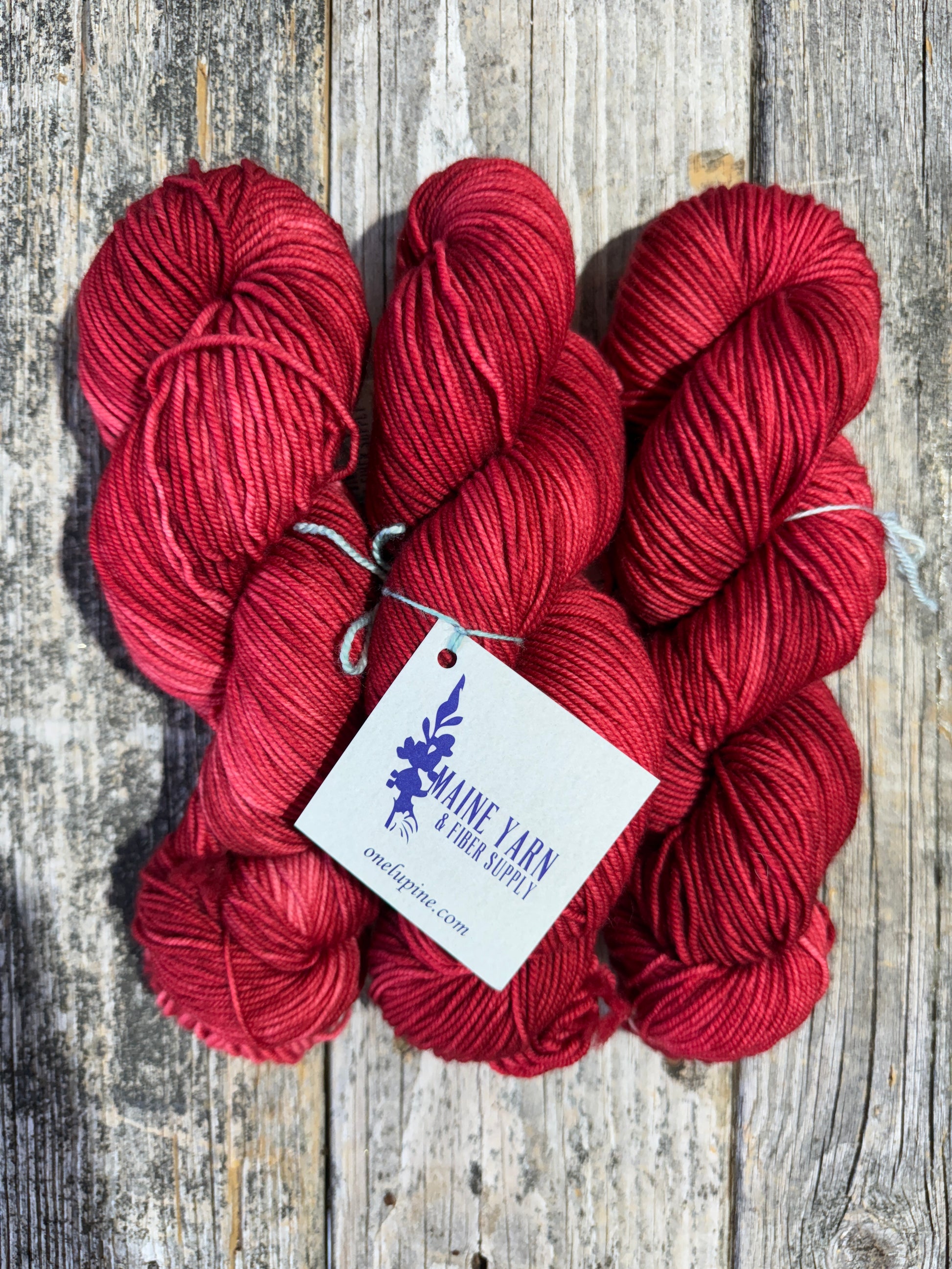 Each skein of Maine Yarn & Fiber Supply yarn is hand-dyed in our Bangor, Maine studio by skilled fiberistas in small batches. So please, expect some minor variations between skeins. For larger projects such as sweaters we suggest a custom dye order. Please contact us for more details.