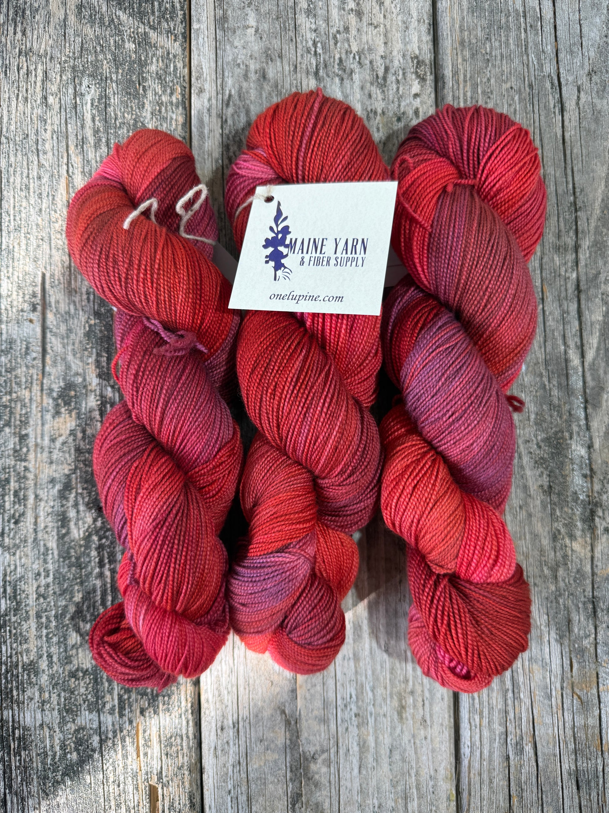 Each skein of Maine Yarn & Fiber Supply yarn is hand-dyed in our Bangor, Maine studio by skilled fiberistas in small batches. So please, expect some minor variations between skeins. For larger projects such as sweaters we suggest a custom dye order. Please contact us for more details.