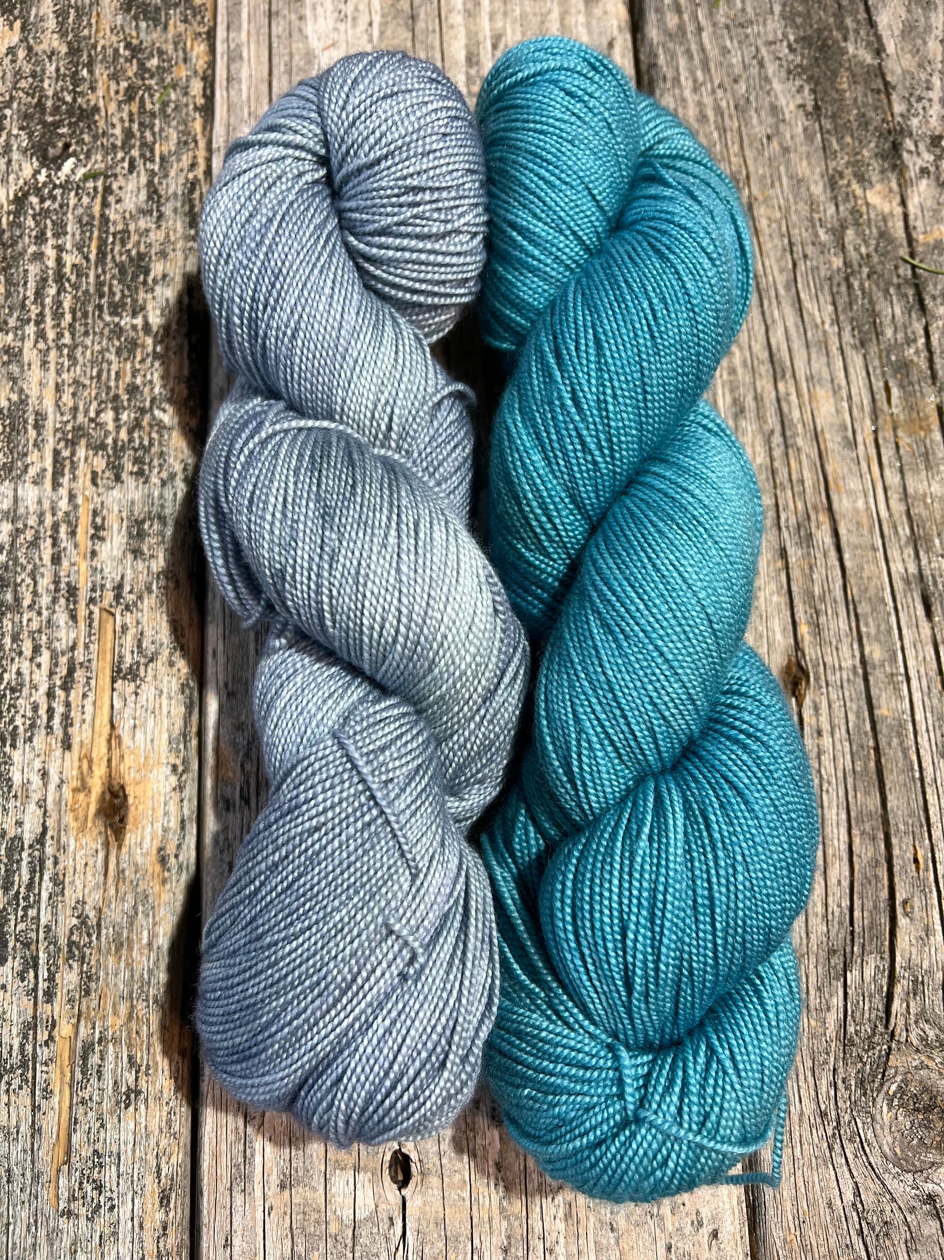 2 x 4oz skein of hand dyed yarn (Eastport, fingering weight) in contrasting colors ($58 value)