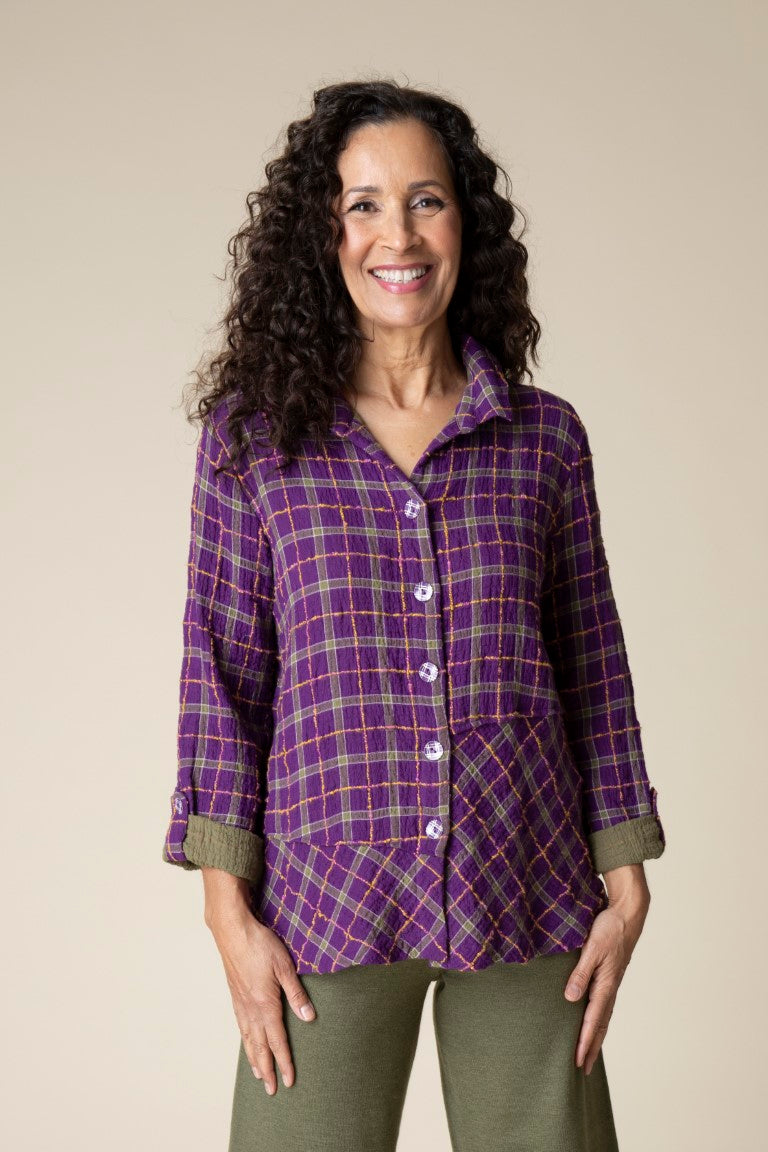 Double Faced Windowpane Pieced Tunic Shirt in Plum by Habitat Clothing