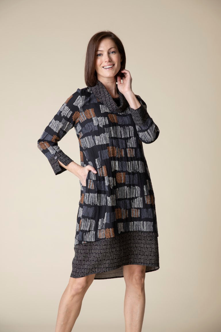 Express Lines Drape Collar Dress in Black by Habitat Clothing