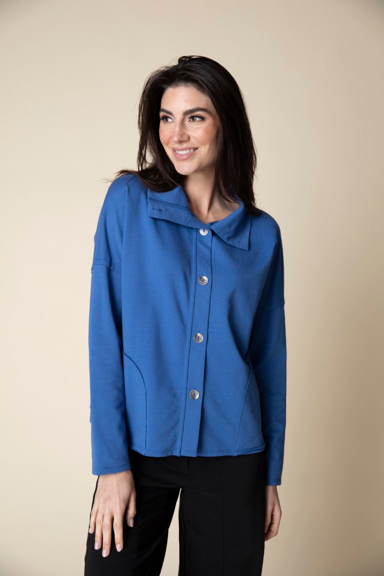 French Terry Curved Pocket Jacket in Blue by Habitat Clothing