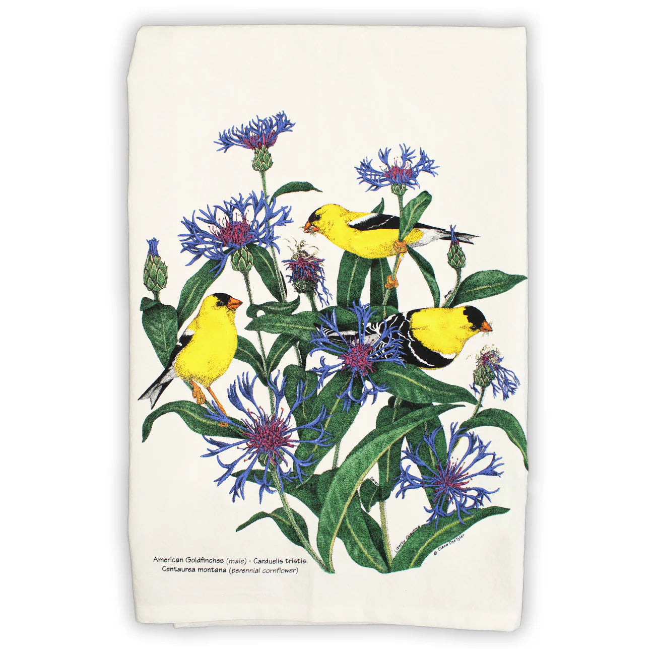 Liberty Graphics presents Goldfinches printed on a 100% cotton tea towel. Made and printed in the USA using cotton from India. Corner loop for hanging. Wash cold / Dry low heat. Pre-wash for added absorbency. Artist: Diana Dee Tyler.