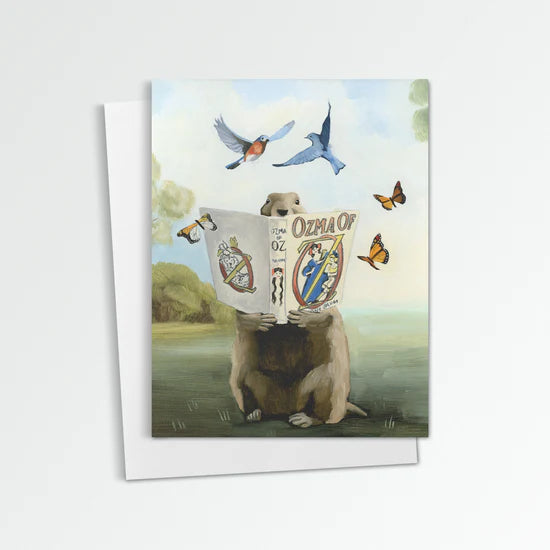 Groundhog Reading Greeting Card (blank inside) by Kim Ferreira (Joie de Vivre)