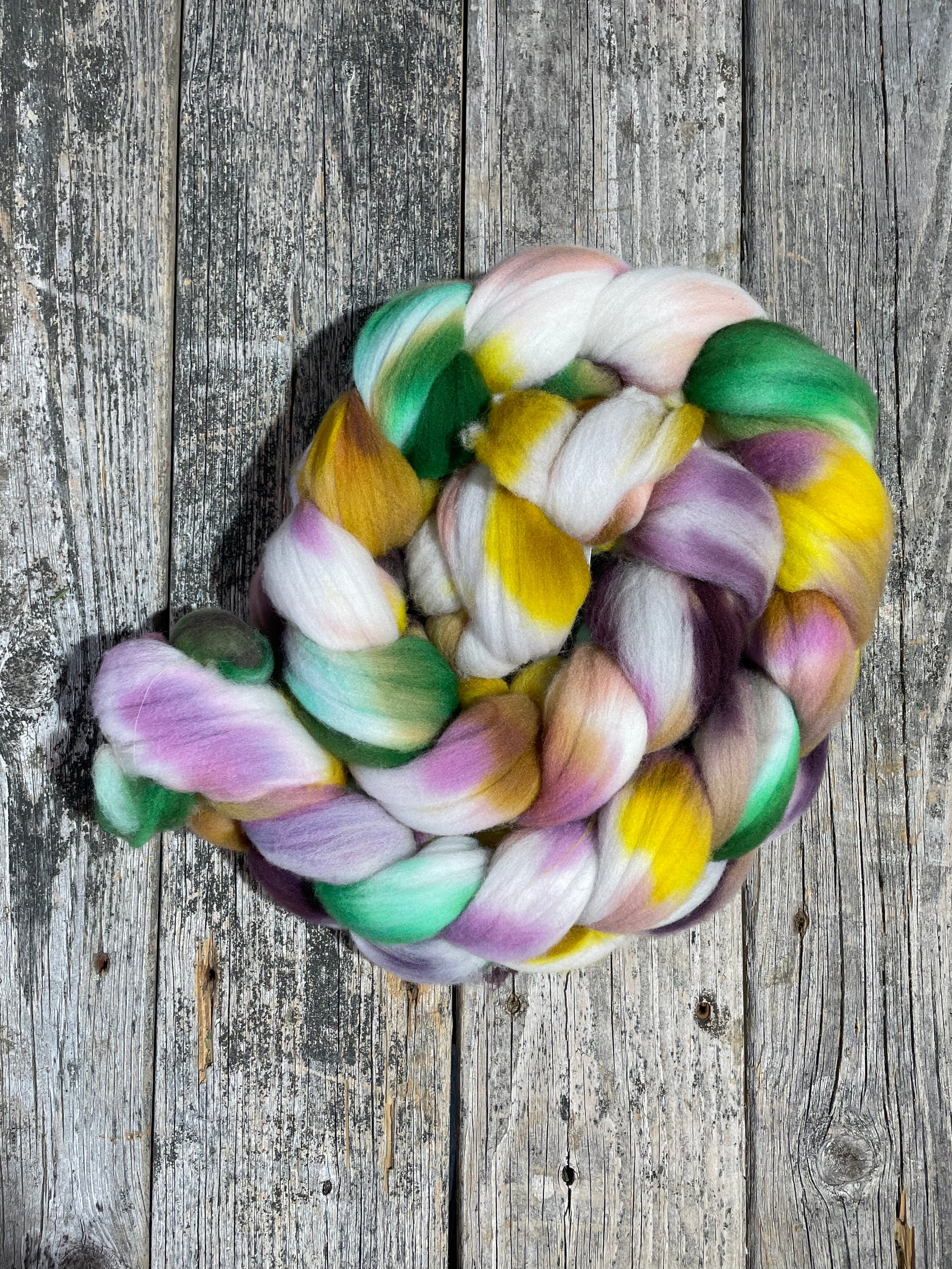 Hand Dyed Rambouillet Top Fiber Braid 7.48oz “Easter”
