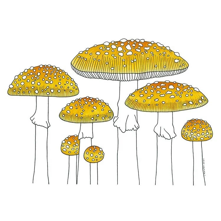 Mushrooms - Greeting Card by 3 Legged Dog Ink