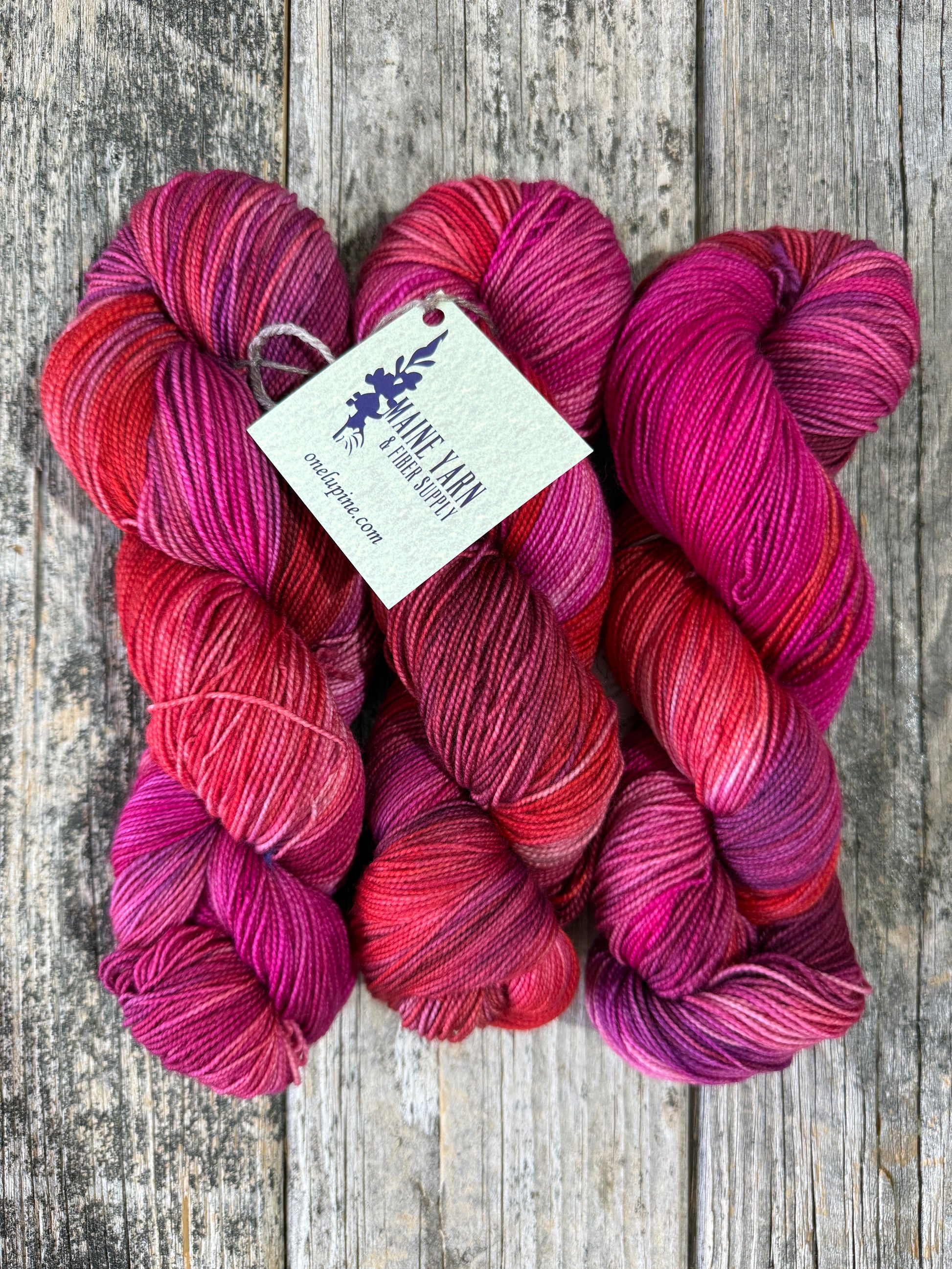 Each skein of Maine Yarn & Fiber Supply yarn is hand-dyed in our Bangor, Maine studio by skilled fiberistas in small batches. So please, expect some minor variations between skeins. For larger projects such as sweaters we suggest a custom dye order. Please contact us for more details.
