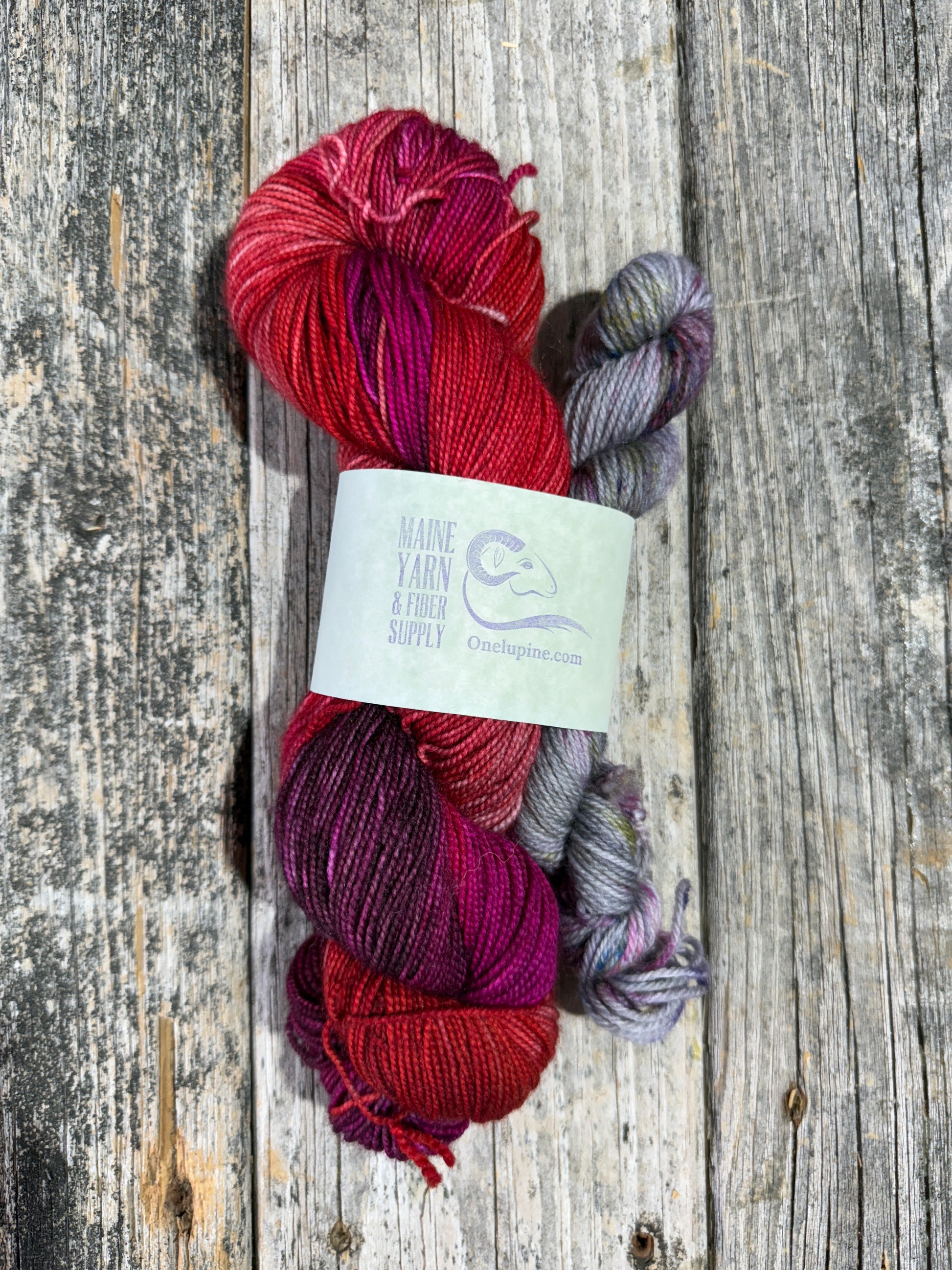 1 x 4oz skein of hand dyed yarn (Pemaquid, fingering weight)