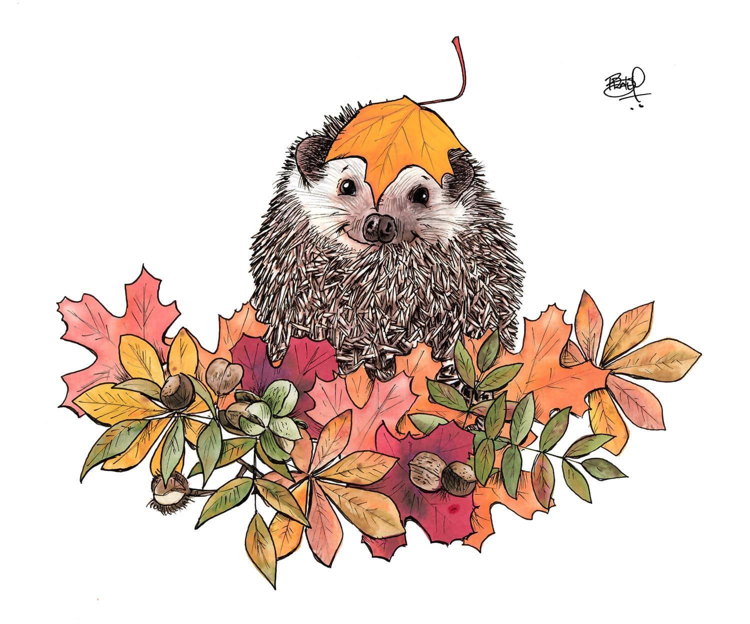 Autumn Hedgy Greeting Card (blank inside) by Shawn Braley Illustration