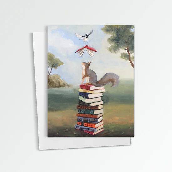Squirrel with Books Greeting Card (blank inside) by Kim Ferreira (Joie de Vivre)