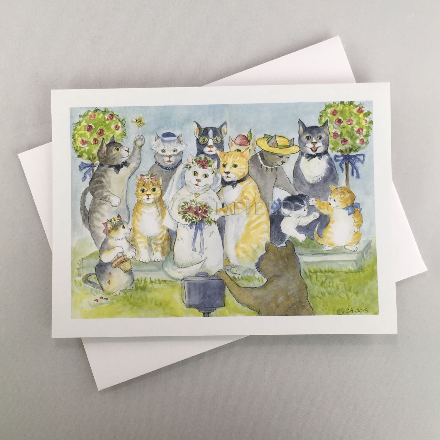 Individual 5-1/8" x 7" notecard comes with a white envelope. Front of card has image with a white border. The inside is blank. A short storyline is written on the back of the card.