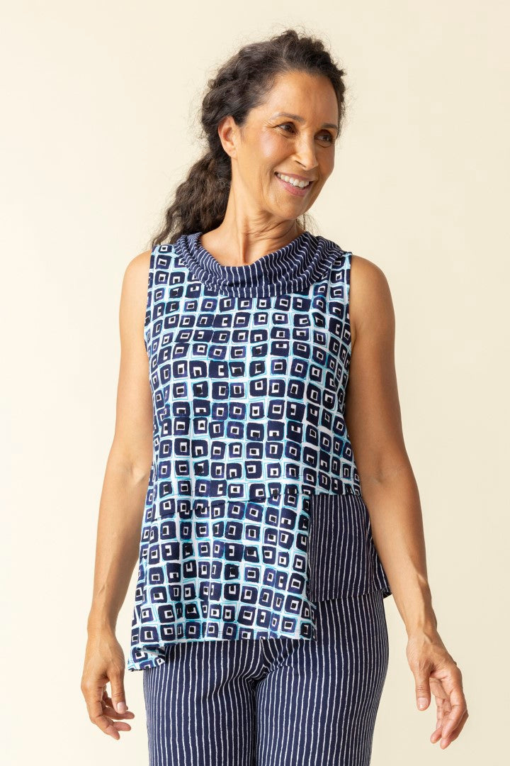 Core Travel Mixed Cowl Sleeveless Top in Navy by Habitat Clothing